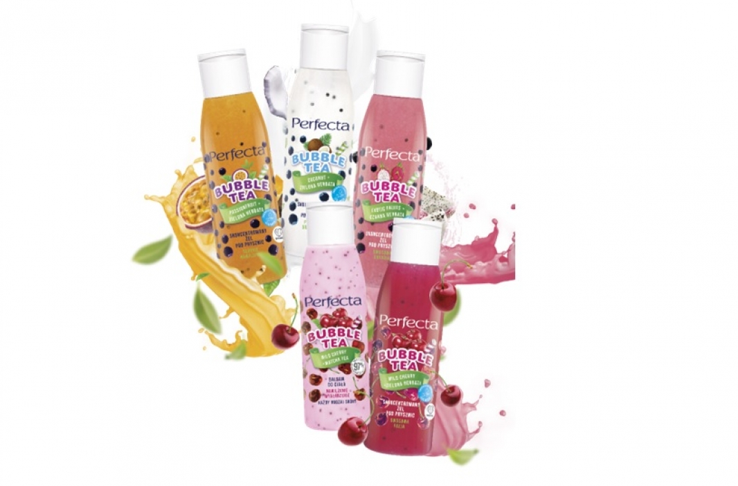 Mini żele pod prysznic z serii Bubble Tea marki Perfecta są wegańskie, a mini balsam zawiera aż 97% składników pochodzenia naturalnego. Jednym z największych atutów żeli jest ich wydajność – specjalna formuła less water sprawia, że używając mniejszej ilości produktu, uzyskasz taki sam efekt jak przy standardowej ilości. Dlatego mini żele Bubble Tea są wręcz idealne na krótkie i długie podróże! Dzięki drogocennym ekstraktom i olejom doskonale wygładzają i odżywiają skórę, a także otulają ją aromatycznym, owocowym zapachem. Innowacyjne formuły zawierają hydrożelowe kuleczki, które rozpuszczają się na skórze, zapewniając jej dodatkowe nawilżenie. Z kolei zawarte w balsamie witaminowe kuleczki sprawiają, że po aplikacji skóra jest nie tylko silnie nawilżona, ale także odżywiona. Wiśniowy mini balsam do ciała zachwyca subtelnie słodkim zapachem, a dzięki ekstraktowi z herbaty matcha niweluje działanie wolnych rodników, a tym samym opóźnia starzenie skóry. Z kolei kolekcja mini żeli pod prysznic pozwala wybrać najbardziej kuszącą wersję zapachową: wiśniową, kokosową, egzotyczną lub marakuja. Skuś się na wielką mini przyjemność!