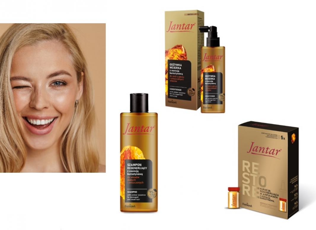 Ten piękny, a zarazem naturalny skarb ziemi, nie tylko czaruje swoim wyglądem, ale przede wszystkim fascynuje swoimi właściwościami. Nie bez powodu stał się wiodącym składnikiem w recepturach kosmetyków Jantar®. Teraz zachwyca jeszcze bardziej, dzięki udoskonalonym składom i formułom produktów z serii do włosów zniszczonych, które znajdziemy w ofercie marki. Z szamponem regenerującym, odżywką-wcierką i kuracją w ampułkach możesz liczyć nie tylko na nową jakość pielęgnacji. Ich praktyczne opakowania z odświeżoną szatą graficzną sprawiają, że korzystanie z nich to sama przyjemność.