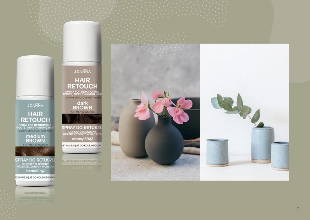 Wyliczono, że nasze włosy w ciągu miesiąca rosną średnio centymetr. A to oznacza, że już kilka tygodni po koloryzacji pojawiają się nieestetyczne odrosty, zmora wszystkich farbujących włosy. Dlatego na rynku zaczęły się pojawiać różnego typu produkty do maskowania kontrastu pomiędzy naturalnym a wymarzonym odcieniem. Prawdziwym hitem okazały się jednak spraye, łatwe w obsłudze i zapewniające natychmiastowy efekt. Mocno nasycone pigmentem, odporne na pot i deszcz, pozwoliły nam w parę chwil przejąć kontrolę nad swoimi włosami. Nie trzeba już z niecierpliwością wyczekiwać wolnego terminu u fryzjera, by wyrównać kolor włosów, można to zrobić samodzielnie jednym kliknięciem atomizera. Efekt retuszu uzyskany z pomocą Joanna Hair Retouch utrzymuje się do pierwszego mycia szamponem, a spray starcza na około czterdzieści aplikacji. To oznacza, że nawet jeśli będziesz go używać codziennie, przedłużysz czas do kolejnej pełnej koloryzacji o ponad miesiąc! A to nie wszystko, ponieważ Joanna Hair Retouch nie tylko specjalizuje się w retuszu odrostów. Doskonale maskuje także srebrne kosmyki i pasemka, które mogą pojawić się już po trzydziestce. Siwe włosy trudniej przyjmują zawarty w farbach pigment i szybciej go tracą, dlatego nawet po koloryzacji tu i ówdzie mogą prześwitywać srebrzyste tony. Szybkoschnąca formuła Joanna Hair Retouch pokrywa je szczelnie pigmentem, w efekcie siwizna natychmiast znika. Spray błyskawicznie maskuje również ubytki włosów i optycznie zwiększa ich objętość na przykład podczas sezonowego osłabienia, które szczególnie wiosną nasila wypadanie włosów.