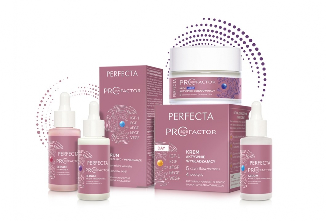 Perfecta Pro Age Factor to innowacyjna linia pielęgnacyjna, która wspiera naturalne piękno skóry i aktywuje jej wewnętrzny potencjał. Synergiczne działanie pięciu bioaktywnych czynników wzrostu w połączeniu z precyzyjnie dobranymi składnikami aktywnymi – takimi jak peptydy i ceramidy – zapewnia skuteczne, wielowymiarowe efekty: wspomaga odbudowę skóry, wygładza ją i wyraźnie redukuje widoczność oznak starzenia.