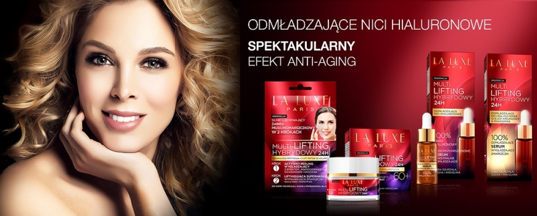 Multi-Lifting Hybrydowy to skuteczna seria gwarantująca spektakularny efekt anti-aging. Działa niczym aktywna fuzja 3 zabiegów estetycznych: nici hialuronowych, wypełnienia kolagenowego oraz liftingu peptydowego. Silnie ujędrnia i napina, wygładza zmarszczki i modeluje owal twarzy, przywracając mu odpowiednie proporcje oraz młodzieńczy kształt zbliżony do litery V.