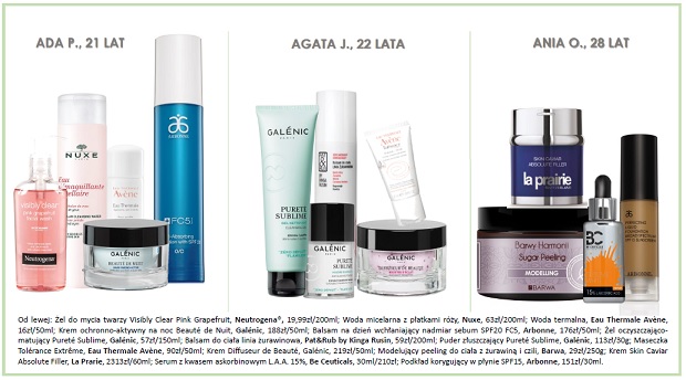 „Moja skóra, jest młoda, jednak bardzo wrażliwa, dlatego dużą wagę przywiązuję do kosmetyków, które wybieram i rzadko próbuję czegoś nowego – pozostaję wierna swoim ulubieńcom. Rano i wieczorem stosuję żel oczyszczająco-matujący do mycia twarzy Pureté Sublime marki Galénic. Następnie smaruję całe ciało balsamem z linii żurawinowej marki Pat&Rub by Kinga Rusin – zawiera on tylko naturalne składniki i nigdy nie podrażnia mojej skóry – a to dla mnie bardzo ważne. Przed nałożeniem makijażu, nakładam na twarz krem Galénic Diffuseur de Beauté, który nie tylko świetnie nawilża, ale też rozświetla, dzięki czemu stanowi idealną bazę pod kolorówkę. Dodatkowo dwa razy w tygodniu wykonuję delikatny peeling pudrem złuszczającym Galénic Purete Sublime, po którym nakładam maseczkę Tolérance Extrême Avène, która przynosi ukojenie mojej wrażliwej skórze. Dzięki takiej pielęgnacji zdecydowanie zmniejszyłam ilość pojawiających się u mnie podrażnień.”