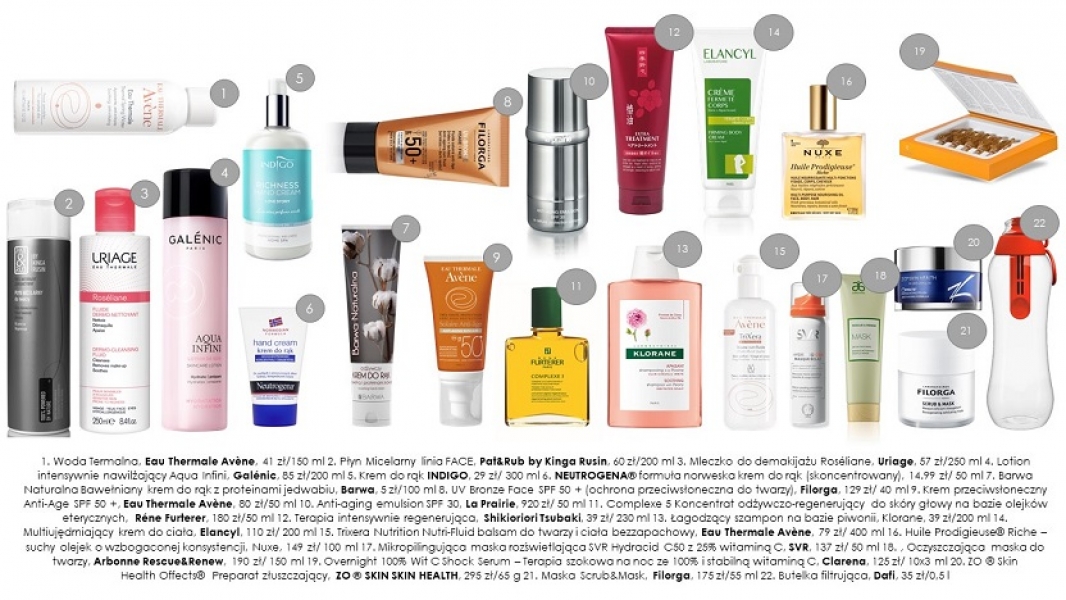 Spróbuj: Płyn Micelarny linia FACE, Pat&Rub by Kinga Rusin, 60 zł/200 ml, Mleczko do demakijażu Roséliane, Uriage, 57 zł/250 ml, Woda termalna, Eau Thermale Avène, 41 zł/150 ml, Lotion intensywnie nawilżający Aqua Infini, Galénic, 85 zł/200 ml.