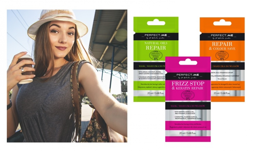 Jednocześnie w trakcie wakacji nie chcesz rezygnować z pielęgnacyjnych masek, zwłaszcza tych do włosów, bo nasze pasma w trakcie upałów narażone są na przesuszenie, łamliwość i odbarwienia. Co robić? Sięgnąć po wygodne maski marki Perfect.Me w jednorazowych saszetkach o pojemności 20 ml. Dzięki temu twoje włosy wrócą z wojaży wypielęgnowane. Maski dostępne są w trzech wariantach pozwalających nawilżyć włosy, zabezpieczyć ich kolor po farbowaniu, a także zapobiegać ich puszeniu się.