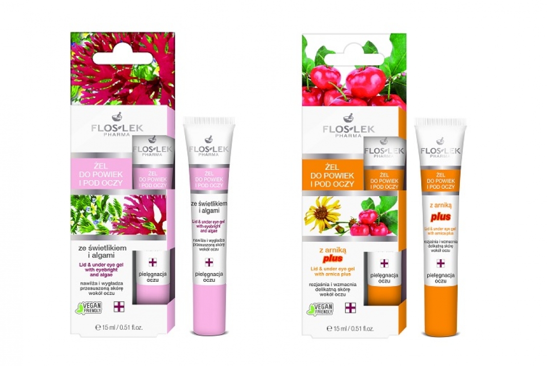 Wyciąg ze świetlika jest wyjątkowo przyjazny dla skóry wokół oczu. Działa przeciwzapalnie, likwiduje obrzęki, łagodzi oznaki zmęczenia i stresu. Usuwa zmęczenie, ból oczu i łzawienie. Rozjaśnia także cienie pod oczami i nawilża naskórek przywracając mu jędrność i elastyczność. Bogatą ofertę kultowych już żeli ze świetlikiem znajdziemy w portfolio marki Floslek Pharma. Teraz linia została poszerzona o dwa nowe produkty.