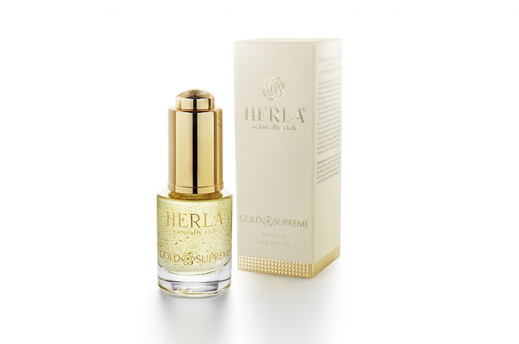Suchy olejek do twarzy z drobinkami czystego 24k złota doskonale się wchłania i jednocześnie intensywnie nawilża skórę. Zawiera kompozycję ultra odżywczych olejów (arganowy, jojoba, z ogórecznika, z pestek jabłek, z czarnej porzeczki, z jagód acai oraz z pestek winogron) silnie regeneruje, łagodzi i odżywia skórę.
