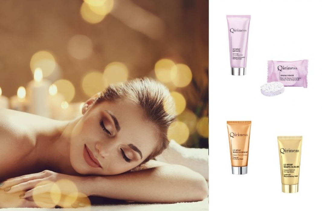 Aby właściwie przygotować skórę do pielęgnacji w domowym SPA, Qiriness proponuje w pierwszym kroku kosmetyki rozświetlające. Le Wrap Exfolys to produkt o delikatnej kremowej konsystencji do wszystkich typów skóry. Dzięki peelingującej formule, która nie zawiera granulek, przynosi efekt złuszczającego masażu. Obumarłe komórki naskórka zostają usunięte, a proces odnowy pobudzony. Skóra natychmiastowo staje się miękka i gładka w dotyku. Z kolei Le Wrap Exfolys au Riz to głęboko oczyszczający scrub z drobnymi granulkami o ryżowo-kwiatowym zapachu, również do wszystkich typów skóry. Kosmetyk usuwa zanieczyszczenia w postaci nadmiaru sebum i obumarłych komórek, odblokowując pory. Niweluje także oznaki zmęczenia, pozostawiając skórę widocznie wygładzoną i jedwabistą w dotyku.