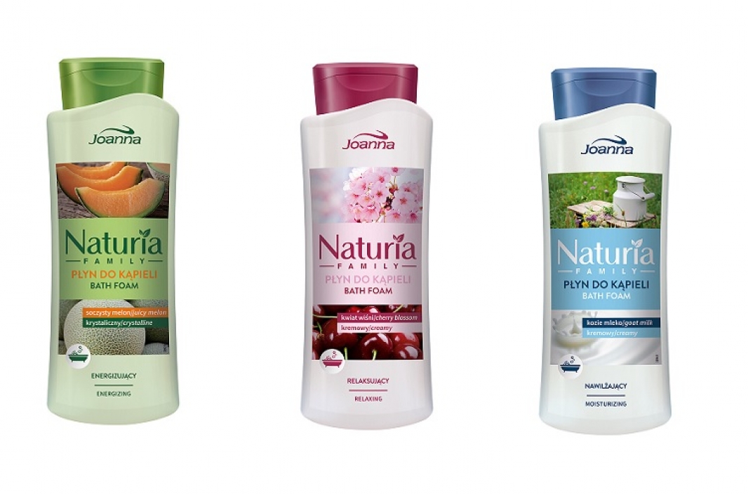 A gdyby tak połączyć relaksującą i pachnącą kąpiel z dobroczynnymi dla skóry składnikami? Trzy nowe rodzinne płyny do kąpieli Naturia Family Joanna, dają możliwość delikatnego oczyszczania skóry i pielęgnacji ciała dla całej rodziny. Mają optymalnie dobrane składniki, z myślą zarówno o dzieciach jak i dorosłych. Dzięki dużym pojemnościom opakowań – aż 750 ml! płyny do kąpieli Naturia Family służą całej rodzinie i są bardzo ekonomiczne. Płyny posiadają przyjemną konsystencję, dobrze się pienią i pięknie pachną. A co najważniejsze, zawierają pielęgnacyjne ekstrakty z koziego mleka, wiśni lub melona. Jakie są ich właściwości dla skóry?