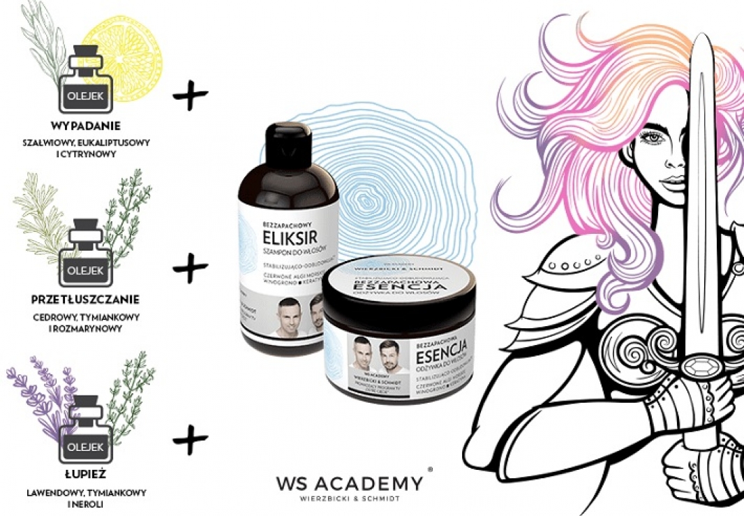 Rynek kosmetyczny jednak na wszystko ma radę! Na półkach sklepowych można znaleźć produkty bezzapachowe, takie jak na przykład esencja i eliksir marki WS Academy Wierzbicki & Schmidt, które nie posiadają także w składzie parabenów, alergenów i SLSów. Poza tym, że można je stosować samodzielnie, są też doskonałą bazą do łączenia z wybranymi według własnych potrzeb olejkami etycznymi. Dzięki temu codzienna pielęgnacja włosów może być jeszcze skuteczniejsza i przyjemniejsza. Tocząc pojedynki z problemami włosów i skóry głowy pozwalają cieszyć się świetnymi właściwościami oraz niezmąconym zapachem drzewa sandałowego, lawendy czy pomarańczy.