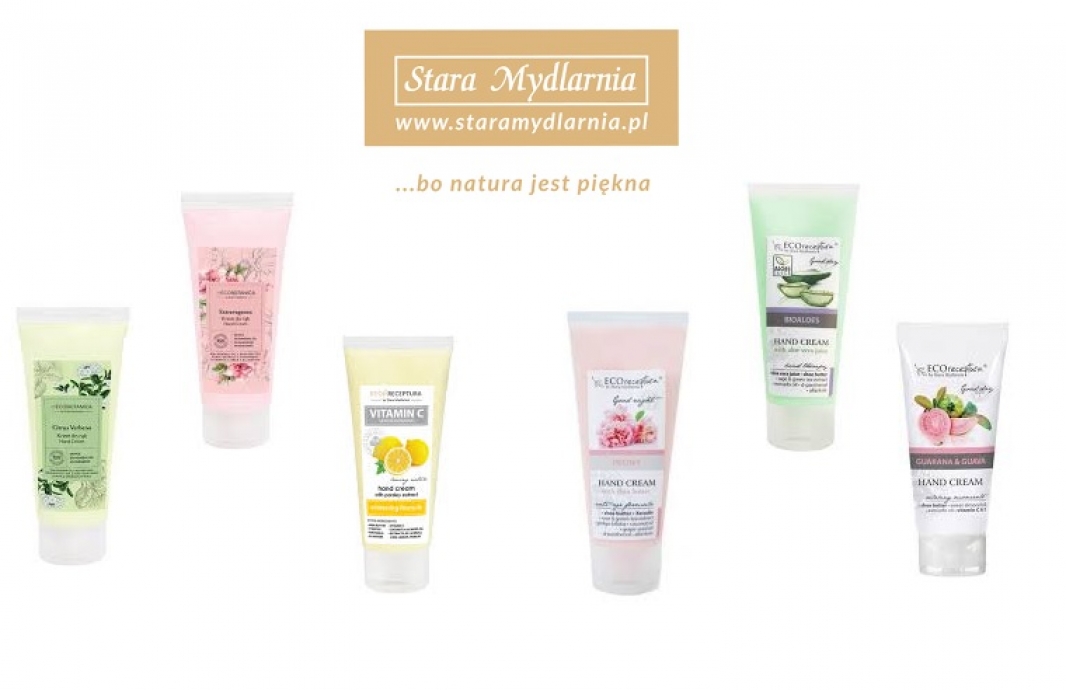 Jeśli zależy nam na szybkiej regeneracji podrażnionego naskórka, Stara Mydlarnia posiada w swojej ofercie wiele innych odżywczych kremów z serii ECO Receptura o zapachu piwonii, werbeny oraz guarany (19 zł/szt.). Ich bogata konsystencja i starannie dobrane składniki sprawią, że skóra dłoni będzie gładka, elastyczna i bardziej odporna na nieprzyjazne czynniki środowiskowe. Swoją skuteczność kremy zawdzięczają m.in. natłuszczającemu działaniu masła shea i naturalnych olejów roślinnych (ze słodkich migdałów, orzechów makadamia oraz z awokado). Zawarta w nich alantoina, proteiny jedwabiu, lecytyna oraz witaminy C, E, B5 mają działanie kojące i przyspieszające regenerację, sprawiają więc, że dłonie odzyskują uczucie komfortu, a ich skóra na powrót staje się gładka i miękka.