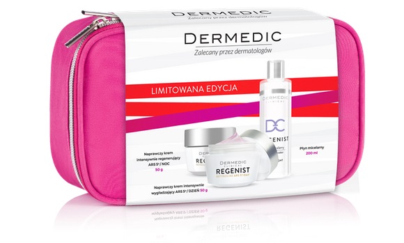 Zestaw Regenist zawiera Naprawczy krem intensywnie wygładzający na dzień 50 g + Naprawczy krem intensywnie regenerujący na noc 50 g + Płyn micelarny 200 ml. Naprawczy krem intensywnie wygładzający na dzień aktywuje procesy naprawcze oraz zapewnia skórze wielowymiarową regenerację. Naprawczy krem intensywnie regenerujący na noc dzięki wysokiej koncentracji przeciwultleniaczy skutecznie zabezpiecza naskórek przed wolnymi rodnikami, odpowiedzialnymi za starzenie się komórek. Płyn micelarny skutecznie usuwa makijaż i wszelkie zanieczyszczenia. Uzupełnia niedobory składników tłuszczowych.