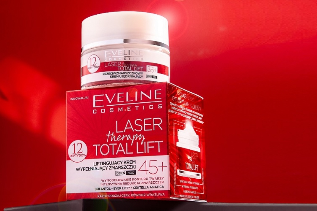 Starzeniu podlega cała skóra, całe ciało, ale dla większości kobiet najważniejsze są zmiany zachodzące na twarzy. W walce z oznakami starzenia się skóry, kobiety oczekują zbliżonych efektów, jak po zabiegach medycyny estetycznej. To właśnie dla nich Eveline Cosmetics przygotował innowacyjne kremy Laser Therapy Total Lift 35+ i 45+. Pomogą one w likwidacji pierwszych zmarszczek, ujędrnią skórę twarzy oraz opóźnią procesy postawania kolejnych, niechcianych zmarszczek. Dobry krem nawilżający, ujędrniający i przeciwzmarszczkowy to podstawa każdej, przemyślanej pielęgnacji.