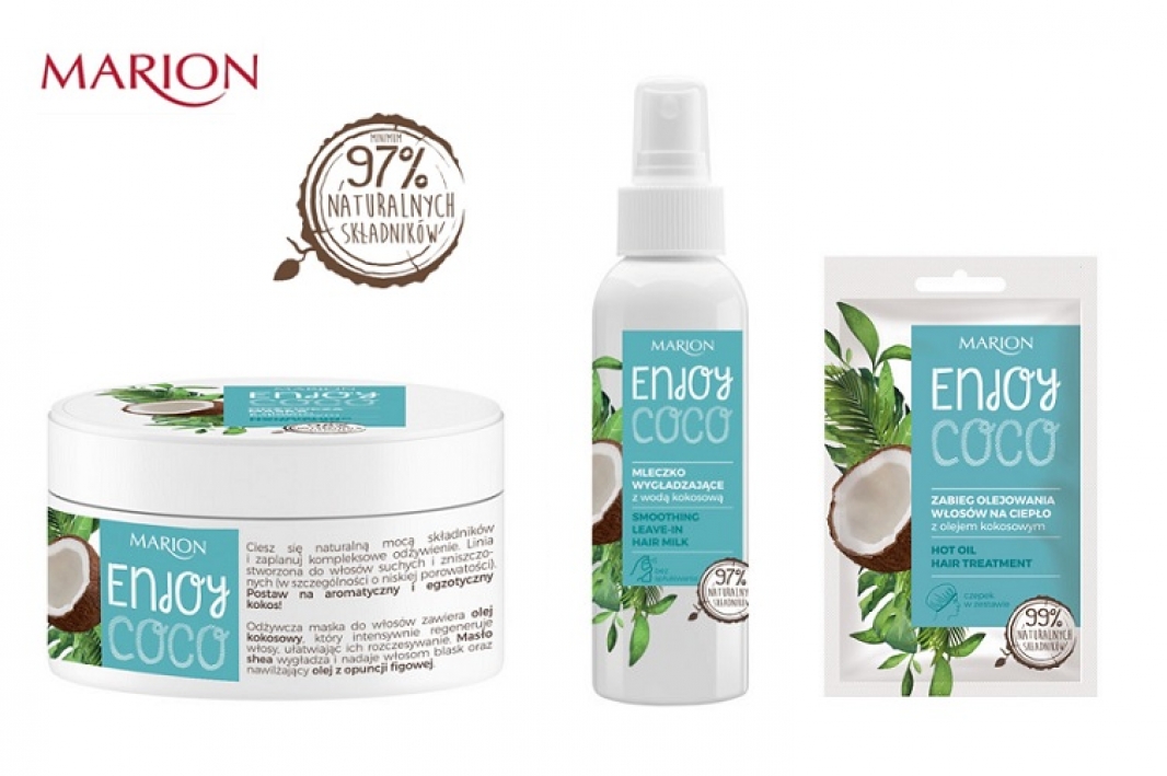Postaw na aromatyczny i egzotyczny kokos. Pierwsza linia do włosów Marion z tak wysoką zawartością % naturalnych składników.