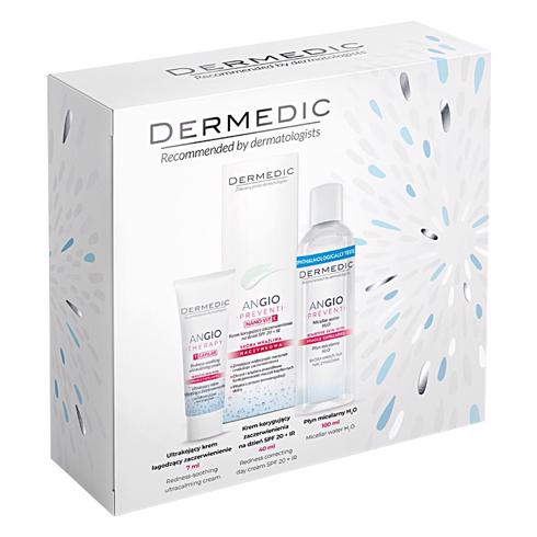 Zestaw Angio zawiera Ultrakojący krem łagodzący zaczerwienienie 7 ml + Krem korygujący zaczerwienienia na dzień SPF 20 + IR 40 ml + Płyn micelarny H20 100 ml.
