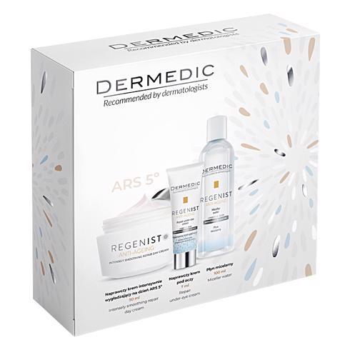 Zestaw Regenist ANTI-AGEING ARS 5 zawiera Naprawczy krem intensywnie wygładzający ARS5 50 ml + Naprawczy krem pod oczy 7 ml + Płyn micelarny 100 ml.