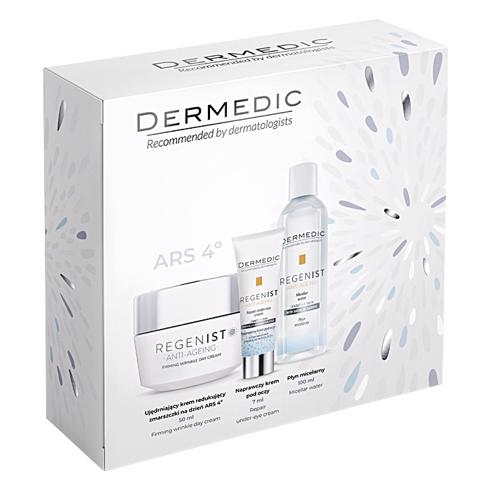 Zestaw Regenist ANTI-AGEING ARS 4 zawiera Ujędrniający krem redukujący zmarszczki na dzień ARS4 50 ml + Naprawczy krem pod oczy 7 ml + Płyn micelarny 100 ml.
