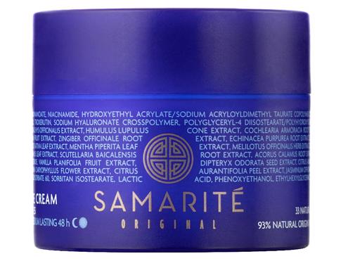 Samarite - Divine Cream - krem rewitalizujący zawierający AQUAXYL, który skutecznie wspomaga gospodarkę wodną skóry, pozytywnie wpływając na poziom jej nawilżenia oraz niacynamid, który zmniejsza produkcję sebum, przyspiesza regenerację skóry i zapobiega powstawaniu niedoskonałości. Produkt zawiera HYACARE FILLER, czyli usieciowany kwas hialuronowy, dający efekt ujędrnienia i poprawy gęstości skóry, a także trokserutynę wykazującą działanie wzmacniania naczyń krwionośnych przyczyniając się do walki z rumieniem oraz niwelowania obrzęków. Produkt został wzbogacony o wyciąg z arniki górskiej, który obkurcza i uszczelnia naczynia krwionośne. Krem posiada lekką konsystencję, pozostawia skórę nawilżoną, odżywioną i pełną blasku. Produkt może być stosowany w okolice oczu, ponieważ został przebadany okulistycznie.