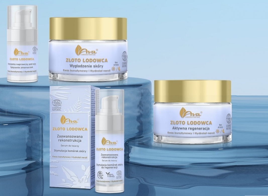 Dlaczego właśnie Złoto Lodowca? Nowa linia kosmetyków zawiera unikalny kwas bursztynowy pozyskany ze szwajcarskiego lodowca – super składnik do intensywnej rewitalizacji. Wszystkie produkty wchodzące w skład linii zostały wyróżnione certyfikatem Ecocert Cosmos Natural, który gwarantuje, że są ekologiczne i wegańskie. Każdy kosmetyk to nieco inna formuła, ale łączy je jedno: posiadają do 99% składników naturalnych. Seria kosmetyków stanowi prawdziwy unikat w świecie beauty: łączy ekologiczne receptury i opakowania z utraodmładzającym działaniem, które przeciwdziała starzeniu się skóry powstałemu przez brak snu czy zmęczenie. Linia świetnie wpisuje się w obecne trendy na rynku kosmetycznym: korzysta z natury i chroni naturę. Opakowania nadają się do recyklingu, a surowce są biodegradowalne.