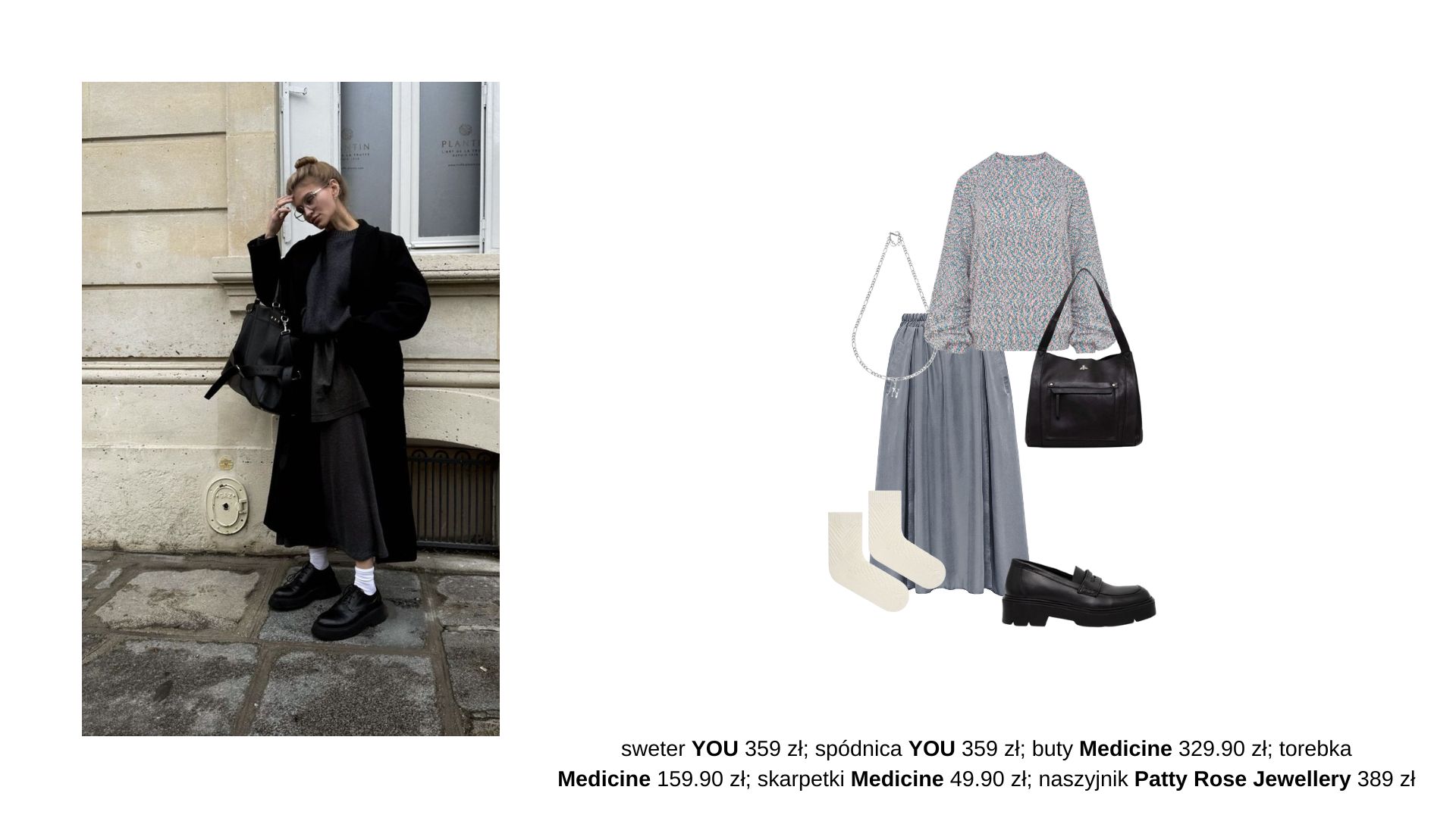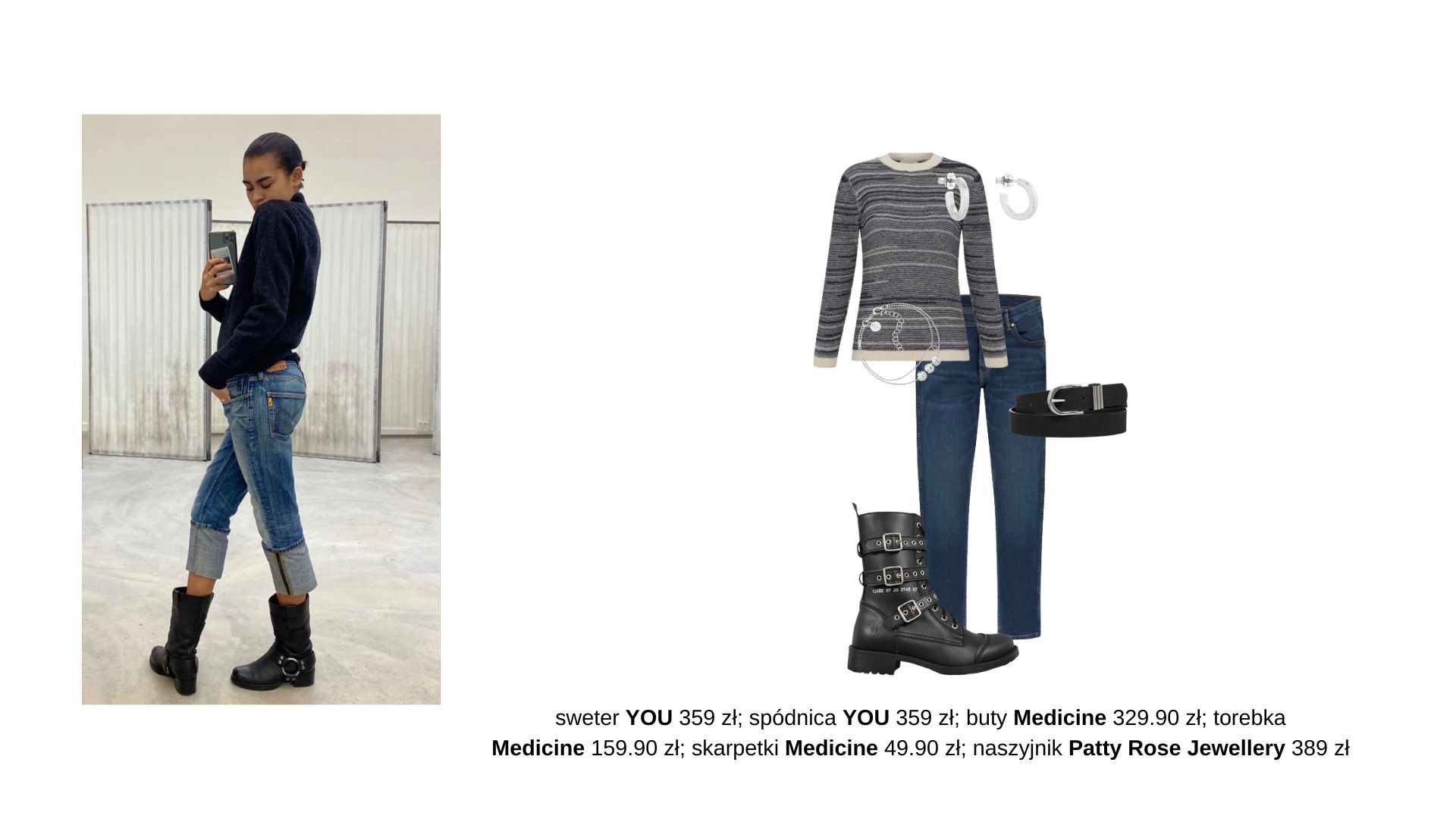 Na chłodniejsze dni idealnym wyborem będą klasyczne jeansy o wąskim kroju, zestawione z butami typu oficerki oraz wygodnym swetrem. W tak prostym zestawieniu warto postawić na odważne akcesoria, takie jak duże okulary przeciwsłoneczne, chusty na głowę, szerokie paski i urokliwa biżuteria, ponieważ to one często nadają charakteru całej stylizacji.