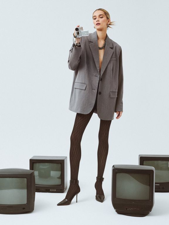 Sesja zdjęciowa promująca kolekcję Work On Style nawiązuje do lat 00., zachłyśnięcia się nowościami, nieoczywistymi rozwiązaniami, eksperymentami i zabawą modą. Przeskalowane, ogromne marynarki i kurtki noszone do spódnic mini i szortów pozwalają wyeksponować nogi. Do tego zachęcają także nowe modele od Gabrielli na sezon AW24/25.