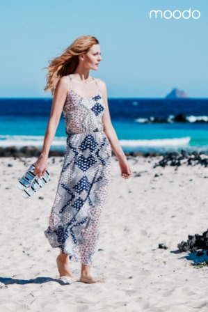 Kolory, letnie fasony i tropikalne motywy charakterystyczne dla wakacyjnej beztroski zachęcają do modowych eksperymentów. MOODO specjalnie przygotowało się w tym roku na letnie plażowanie. Stawia bowiem na kontrastowe połączenia i soczyste kolory. Nie zabraknie również motywów kwiatowych, ponadczasowych marynistycznych pasków czy motywów safari. Skąpe formy kostiumów kąpielowych w bezpiecznych odcieniach od granatu, po błękity, biel z wyrazistymi motywami roślinnymi będą hitem tego lata. Florystyczne akcenty dodają wyrazistości przybierają również gdzieniegdzie tropikalne motywy idealnie wpisujące się w klimat sesji wizerunkowej marki.