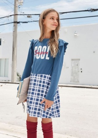 Dziewczynki, na rozpoczęcie roku szkolnego mogą postawić na granat oraz róż uzupełnione o szarość, kolory te pojawiają się na ubraniach w nowoczesnym kroju. Na całość linii składają się wygodne sweterki, sukienki imitujące połączenie bluzki z koszulą, plisowane spódnice, wygodne legginsy czy bluzy w oryginalnym wydaniu. Propozycje dla młodych dam są bogate w intensywne kolory, które pozwolą na dłużej zachować wspomnienia z wakacji. Nadruki naniesione na wygodne i nowoczesne fasony, pozwalają tworzyć niezobowiązujące miejskie stylizacje.