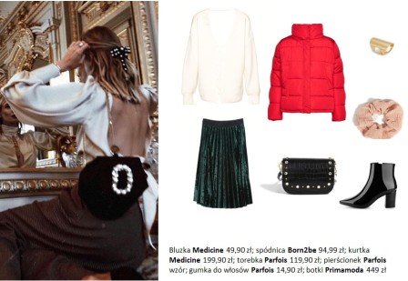 Wolisz skromniejszy outfit? Romantyczny zestaw z plisowaną spódnicą odkryje Twoją dziewczęcą i delikatną naturę. Dla fanek minimalizmu i klasyki idealną propozycją jest czerwona kurtka puchowa, która sprawi, że nie zmarzniemy.
