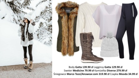 Dobrym wyborem będzie także stylizacja warstwami – najpierw body lub top, na to ciepły sweter biały jak śnieg, a jako okrycie wierzchnie kurtka lub kamizelka, obowiązkowo