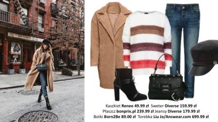 Spędzając zimę w mieście, przemieszczamy się sprawnie, pomiędzy załatwianiem sprawunków a przebywaniem z bliskimi. Postawmy na klasyczny look. Zakładamy must have tej zimy – płaszcz z domieszką pluszu, jeansy o prostym kroju, lekko marszczące się przy nogawce, sweter zdobiony pasami – ulubieńcami sezonu w komplecie z czarnymi dodatkami.