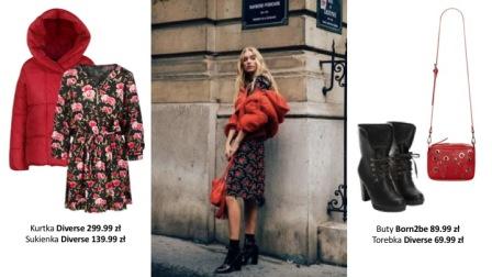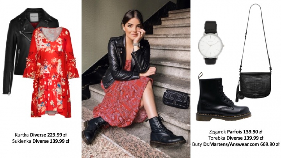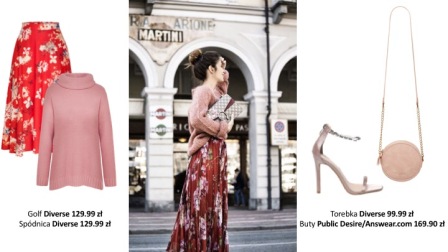 Połączenie pudrowego różu w postaci golfu, z intensywnie czerwoną spódnicą o długości midi, to idealne rozwiązanie dla kobiet chcących uzyskać delikatny efekt niewymuszonej elegancji. Kierując się bardziej w stronę grunge’u, zamiast sandałków na obcasie wybieramy ponadczasowe czarne Martensy i skórzaną, dopasowaną Ramoneskę. Razem z kwiecistą sukienką sięgającą za kolano uzyskamy zarówno dziewczęcy, jak i rockowy look. Takie lekko oversize’owe zestawienia szczególnie zalecane są dla posiadaczek tak zwanej budowy jabłka.