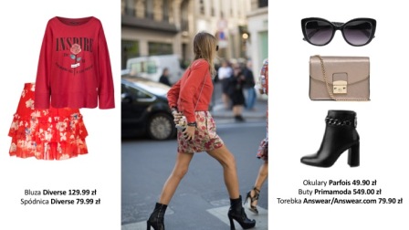 W tym sezonie nie boimy się wariacji stylów, odcieni czy mieszania sobą różnych printów. Bluza z nadrukiem, kwiecista spódnica z falbanami i botki na obcasie, to idealnie wyważone połączenie elegancji ze sportowym akcentem. Sytuacja podobnie wygląda w przypadku zwiewnej sukienki wypełnionej kwiatami, zestawionej z oversize’ową czerwoną kurtką – jednocześnie podkreśli atuty naszej figury, a mankamenty subtelnie ukryje.