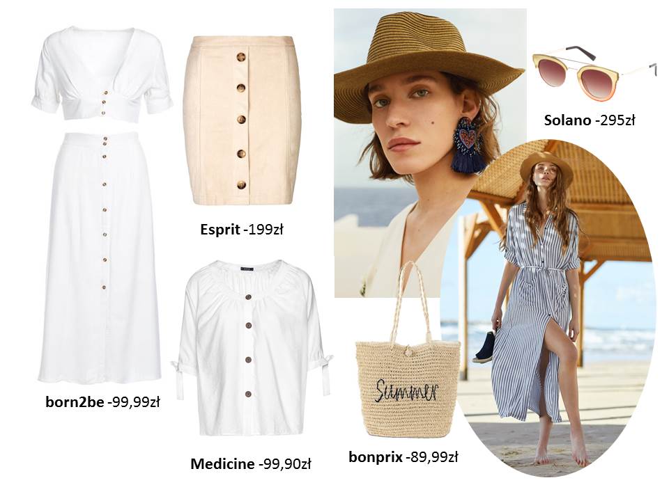 Koszulowa sukienka z dobrego jakościowo materiału śmiało może zastąpić obcisłe kreacje. Zapewni tym samym nie tylko komfort, ale także spektakularny wygląd. Dobrze będzie wyglądała połączona z dodatkami w kolorze złota lub elementami drewna. Do tego pojemny koszyk z rafii i stylizacja na upalny dzień gotowa.
