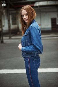 Nasza kolejna kurtka – Slim Rider – również pojawi się w nowej odsłonie, tym razem w skróconej wersji i zapięciem na zamek. Uszyliśmy ją z denimu, który został poddany płukaniu – jest gotowa na przywitanie zimy, ma wyrazisty kolor i odważną czerwoną podszewkę. Czerwone akcenty powtórzą się wielokrotnie w kolekcji, między innymi jako wypustka na naszym kultowym modelu skinny – Scarlett.