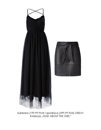 Skóra i tiul to kolejne idealnie dopełniające i spajające całą kolekcję materiały. Skórzana spódnica i spodnie pięknie współgrają z delikatnymi materiałami, a tiulowe sukienki uwodzą swoją lekkością i pozwalają poczuć się niepowtarzalnie. Niezależnie czy wybierzesz rockową skórę czy romantyczny tiul, dzięki propozycjom z kolekcji Orsay „Mad About The Girl” koniec roku będzie należał do Ciebie.