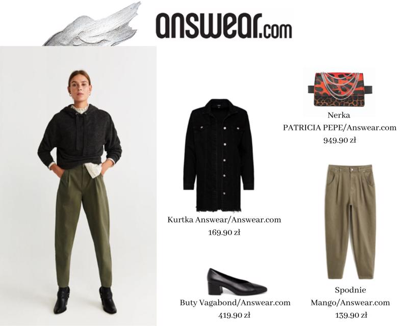 Jeśli na pierwszym miejscu stawiasz wygodę, to jeansy zamień na materiałowe spodnie typu mom. Dla fanek butów na obcasie idealną propozycją będą skórzane czółenka Vagabond. Kolejny element stylizacji to jak zawsze niezawodna nerka. Patricia Pepe na stronie answear.com proponuje model w zwierzęcy, oryginalny print.