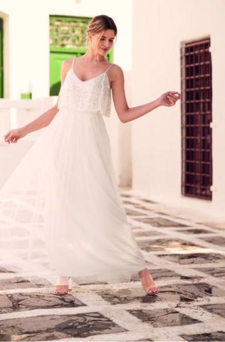 W kapsułowej kolekcji ślubnej znajdziemy propozycje dla druhen i gości weselnych, ale przede wszystkim dwie, olśniewające suknie dla panien młodych. I to w bardzo atrakcyjnych cenach: 299,99 PLN i 449,99 PLN. Pierwsza to subtelna suknia ślubna z warstwą siateczki zdobionej cekinami. Sukienka posiada regulowane ramiączka i wyszczuplające sylwetkę odcięcie w talii. Elastyczna podszewka na całej długości zapewni komfort, tak ważny w tym dniu. Drugi model to długa sukienka z koronkową górą, haftowanymi wstawkami i siateczkowym dołem. Z przodu dekolt V-neck na cienkich, regulowanych ramiączkach, z tyłu suwak i gorsetowe panele po bokach. Odcinana talia i rozszerzany dół z kilku warstw tiulu z falbaniastym wykończeniem sprawi, że panna młoda poczuje się jak prawdziwa księżniczka. Do tego sukienka jest wykończona elegancką, satynową podszewką. Dbałość o szczegóły, kompetencje marki Orsay w projektowaniu kobiecych sukienek i przy tym bardzo atrakcyjne ceny w porównaniu do cen salonowych, to mocne argumenty, aby przyjrzeć się bliżej tej ofercie. Limitowana kolekcja ślubna jest dostępna tylko online, na orsay.com.