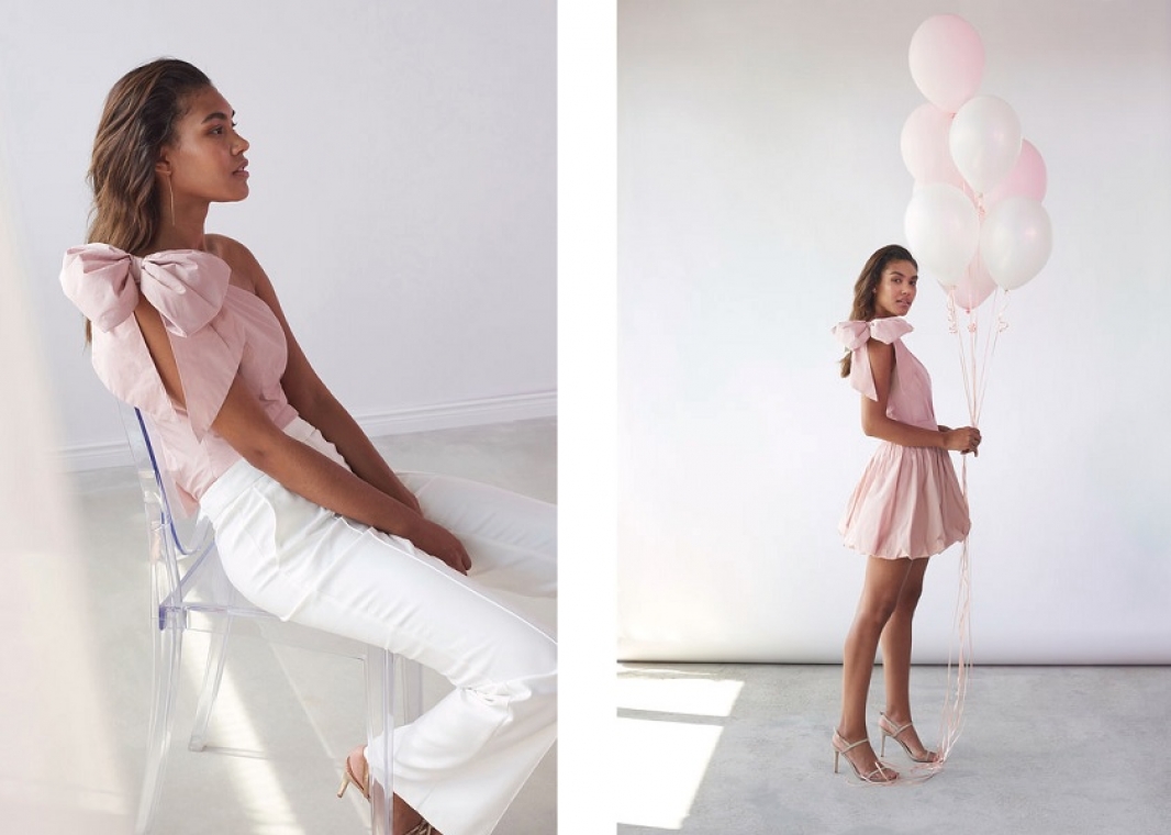 Kolekcja Joyful Moments to pastelowe zestawienie różowych, błękitnych i białych stylizacji dopełnione charakterystycznymi dodatkami takimi jak piękne złote sandałki czy ponadczasowe torebki na łańcuszku. Wśród propozycji znajdują się rozwiązania dla każdej kobiety takie jak zestaw tiulowej spódniczki z delikatną bluzką w wiązanymi na kokardki ramiączkami, mini spódniczka bombka z bluzką w tym samym kolorze z gigantyczną kokardą na ramieniu lub kilka sukienek odpowiednich dla każdej sylwetki.