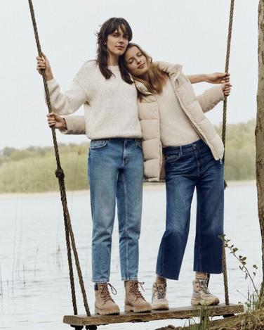 Damska kolekcja to głownie lejące sukienki z nadrukami w stylu vintage, w połączeniu z brązową koniakową skórą, denimem i i przytulnymi dzianinami w modnych odcieniach Bordeaux - jasnym czerwonym i promienną kurkumą. Klasyki, takie jak puchowe i zamszowe kurtki skórzane oraz wełniane płaszcze wykonane z wysokiej jakości włoskiej mieszanki wełny są kluczowymi elementami kolekcji i są ponadczasową odzieżą wierzchnią. Te elementy najlepiej oddają ducha zrównoważonego rozwoju i są przyjazne dla zwierząt. Używając wełny, Esprit przestrzega “Reasonable Wool Standard”- niezależnej i dobrowolnej dyrektywy branżowej. Gwarantuje to traktowanie owiec wełnianych według standradów “Five Freedoms” FAWC – oznacza to przestrzeganie najlepszych praktyk, dotyczących zarządzania i ochrony gleby. Ponieważ Esprit dąży do dalszego rozszerzenia swojej oferty zrównoważonej wełny, do 2020 roku do 50% wełny będzie pochodzić z certyfikowanych źródeł.
