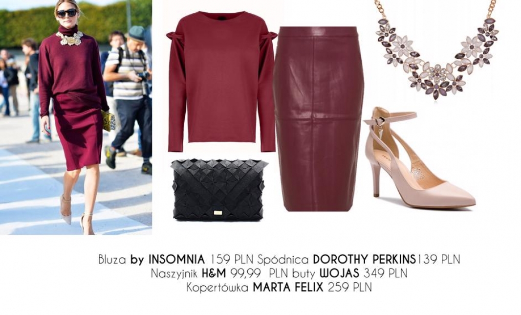Bordo czy wino możesz zastosować w dodatkach, nie musi być to kolor dominujący. Z łatwością połączysz go z podstawowymi kolorami: czernią i bielą, a także granatem, brązem czy beżem.