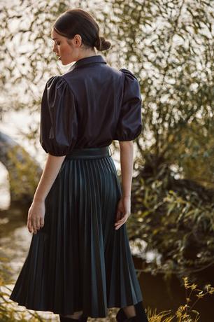W sezonie Jesień Zima 2020 Mohito postawiło również na sztuczną skórę. Ten materiał pojawił się w formie koszuli z długim i krótkim rękawem, spódnicy czy sukienek.