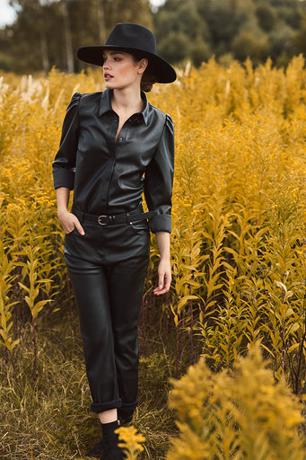 Miękkie i puszyste swetry w twarzowych beżach, kurtki z kożuszkiem czy najmodniejsze ubrania z imitacji skóry to idealne rozwiązanie na nadchodzące chłodniejsze dni. Prairie Girl to kolekcja pełna kolorów ziemi, kwiatowych printów i miękkich faktur. Podkreślone ramiona i podkreślona talia to znaki rozpoznawcze kolekcji. Charakterystyczne bufki znajdziecie w swetrach i sukienkach ze sztucznej skóry. S