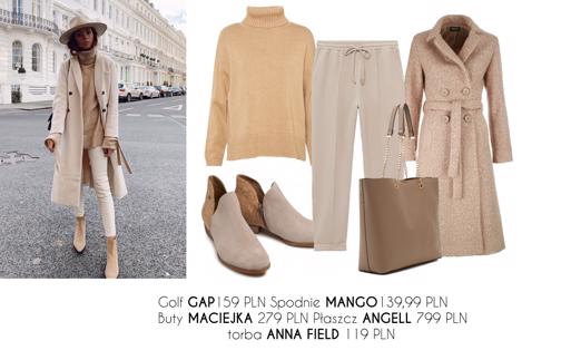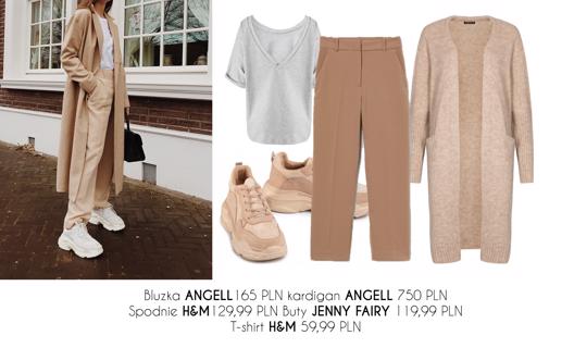 Beżowe total looki często przywodzą nam na myśl charakterystyczne i piękne płaszcze Max Mara z wielbłądziej wełny. Hitem sezonu jest łączenie właśnie eleganckiego płaszcza z dresami i sneakersami.