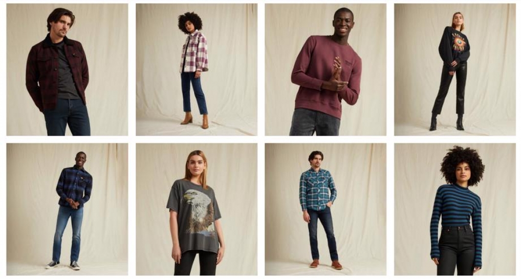 W przypadku mężczyzn powracają dżinsy w znanych fasonach – Texas, Bryson, Larston i Greensboro, a kurtki i koszule typu trucker w kratę tworzą surowy zachodni styl. W kolekcji damskiej elegancko powlekany denim pojawia się w popularnych fasonach, takich jak Body Bespoke Skinny i Women’s Heritage WildWest. Czarny i niebiesko-czarny denim jest w kolekcji kluczowy, a stonowana paleta nadaje nostalgiczny charakter. Krój oversize króluje wśród t-shirtów i koszulek. Klasycznego klimatu vintage nadają koszulki i bluzy z krojami retro i motywami Americana, a także kosmiczne grafiki inspirowane dalekimi podróżami, od pulp fiction z lat 60. do gier zręcznościowych z lat 80.