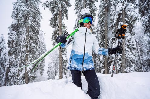 Ubranie na pierwszym froncie walki ze śniegiem i mrozem to z kolei kurtka narciarska bądź snowboardowa. Ze względu na swoją ważna rolę musi spełniać szereg wymagań. Ma być ciepła, wygodna, chronić od wiatru, nie przemakać, a także posiadać liczne kieszenie na ski-pass, gogle, słuchawki czy klucze. Jakie materiały mogą sugerować, że dany model sprawdzi się na stoku? Na pewno będzie to Membrana Sensortex 10 000, która zapewnia wodoodporność i optymalny mikroklimat, a także Merino Wool Insulation z naturalną, rozgrzewającą i utrzymującą optymalną temperaturę ciała wełną. Kurtki wykonane z tych tworzyw znajdują się m.in. w kolekcji marki Volkl.
