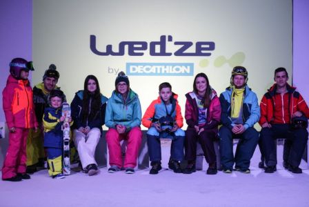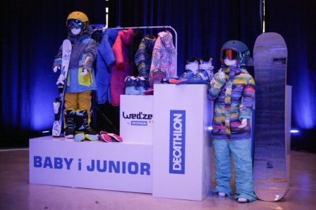 Na wybiegu niczym na stoku zaprezentowało się ośmioro narciarzy i snowboardzistów, w tym juniorzy, w czterech kategoriach odpowiadających liniom kolekcji: freeride, freestyle, trasa oraz baby+junior. Dorośli modele, będący na co dzień pracownikami sieci Decathlon, szusowali parami, a towarzyszyły im komentarze szkoleniowców technicznych marki Wed’ze, omawiających benefity i nowatorskie rozwiązania zastosowane w elementach stroju. Widownię najbardziej rozczulił najmłodszy uczestnik wydarzenia, czyli 3 letni Marcel, który z wielkim wdziękiem przedstawił kombinezon dedykowany maluchom. Podsumowaniem pokazu było wspólne wystąpienie wszystkich osób na wybiegu.