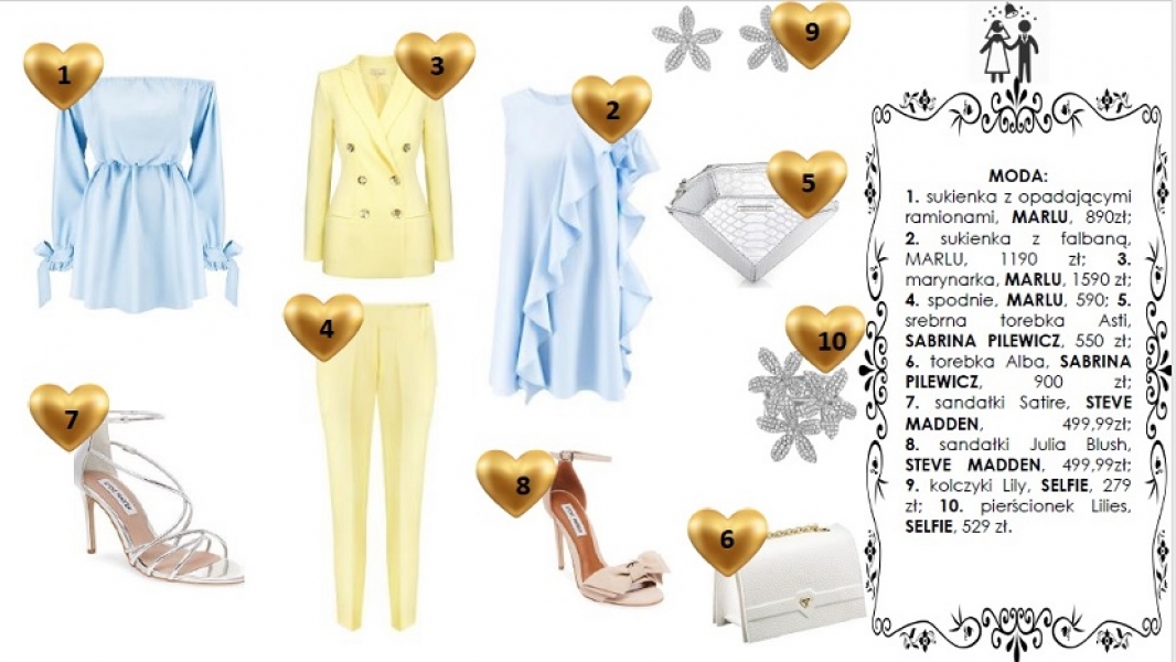 To Ci się przyda: sukienka z opadającymi ramionami, Marlu, 890 zł; sukienka z falbaną, Marlu, 1190 zł; marynarka, Marlu, 1590 zł; spodnie, Marlu, 590; srebrna torebka Asti, Sabrina Pilewicz, 550 zł; torebka Alba, Sabrina Pilewicz, 900 zł; sandałki Satire, Steve Madden, 499,99zł; sandałki Julia Blush, Steve Madden, 499,99zł; kolczyki Lily, Selfie, 279 zł; pierścionek Lilies, Selfie, 529 zł;