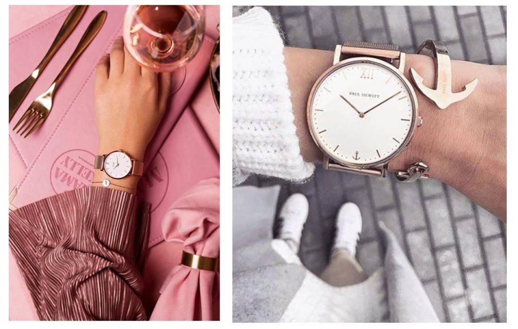 Swój wielki renesans przeżywa różowe złoto. Skórzane, sylikonowe i gumowe paski łączą się ze stalowymi kopertami, powlekanymi właśnie różowym odcieniem złota.