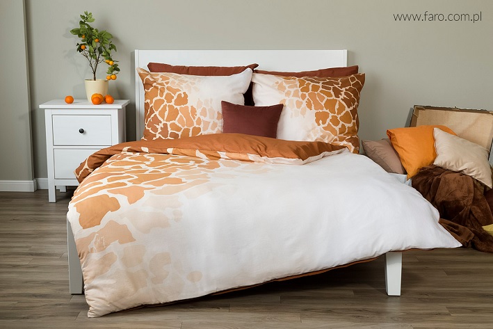 Jesienne trendy w aranżacji wnętrz przynoszą chwile wyciszenia i spokoju po niezwykle bujnej, pełnej kolorowych kwiatów, wiosenno-letniej aurze. Warto w tym czasie zmienić wystrój i skusić się na dodatki w ciepłych barwach, dzięki którym stworzymy przytulną dekorację. Brąz, beż, żółty, koral, zgaszona czerwień czy butelkowa zieleń to odcienie, które wprowadzą do sypialni odrobinę tajemniczego, afrykańskiego stylu, pozostając jednocześnie w tradycyjnych klimatach jesiennej aury. Taka interpretacja jesieni to propozycja od marki Faro. Pościel Animal Motive z motywem geparda i żyrafy pozwoli zachować wspomnienie lata i będzie niezwykle modnym akcentem w naszej sypialni!