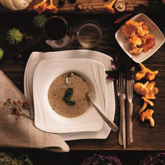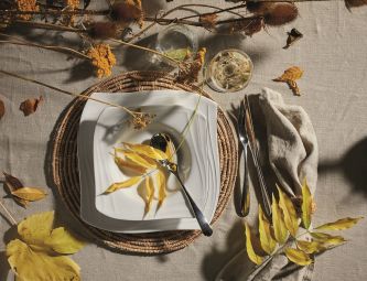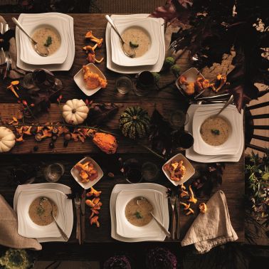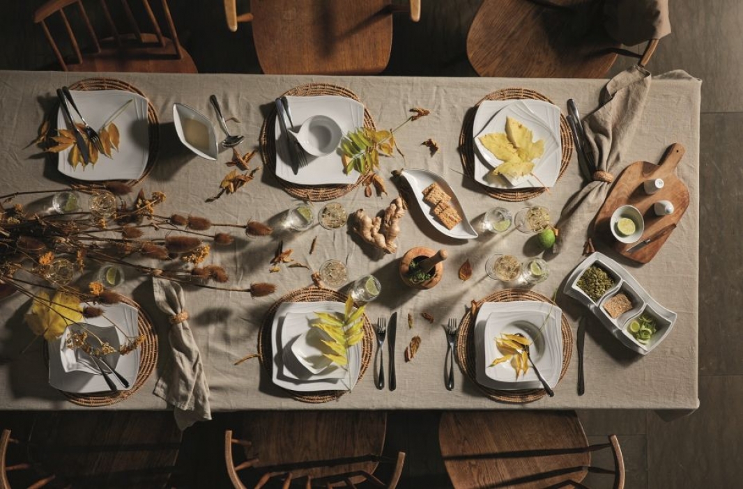 gdy stół jest wykonany z drewna i sam w sobie stanowi element dekoracyjny. Ułożone na nim dynie, owoce dzikiej róży, korzeń imbiru czy bukiet z suszonych roślin perfekcyjnie będą komponować się z wyrafinowanym pięknem serwisu Celebration. Znalezione w parku lub na spacerze liście w odcieniach bordo i złota, jarzębina, kasztany czy orzechy dopełnią całości. Pamiętajmy, ze dzięki darom natury nasze nakrycie stołu może być jeszcze piękniejsze!