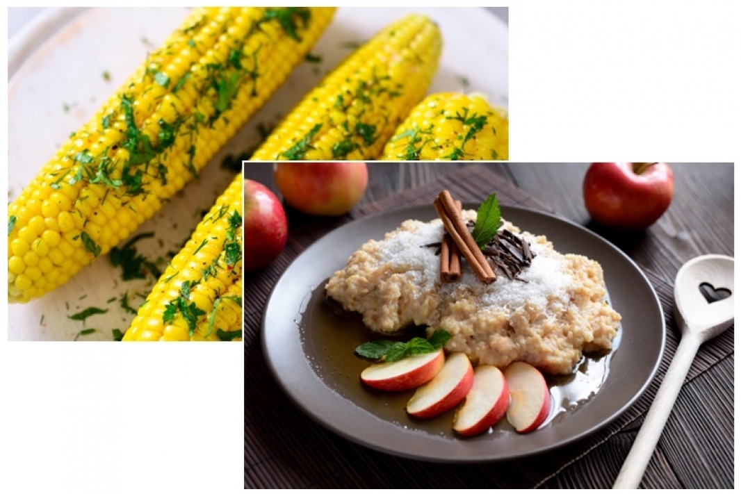 Kukurydzę obrać, opłukać, pokroić na grube plastry (cztery). Ugotować w lekko osolonej wodzie przez ok. 15 minut. Odcedzić. Do garnka dodać masło, oprószyć solą i pieprzem i dokładnie wymieszać. Można podawać ze szklanką ulubionego 100% soku.